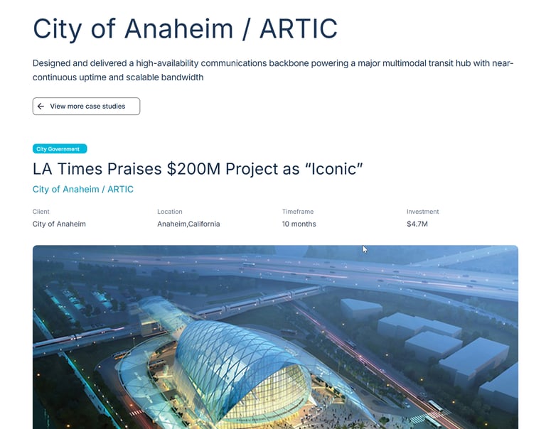 Teraband had an impressive client roster — LAX, Loma Linda University Medical Center, San Diego International Airport — but none of it was visible online. We documented their project history, built out case study content, and structured the site to lead with the work they've actually done. The proof was always there. We just made sure people could find it.
